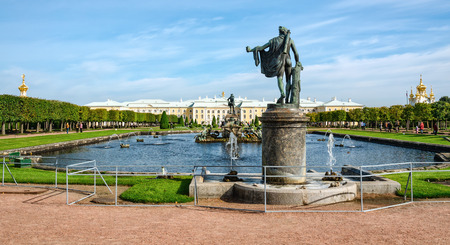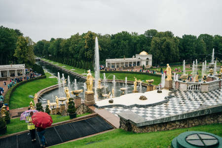Peterhof, Saint-Petersburg, Russia, Jul 23, 2017. The famous Park of fountains in Peterhof in Saint-Petersburg