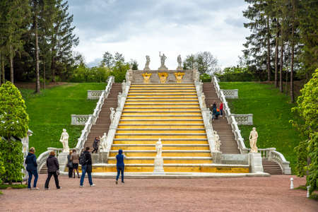 Saint Petersburg, Russia - 18 September 2015 - The Gold Mountain cascade fountaine in park of the Marli, Peterhof
