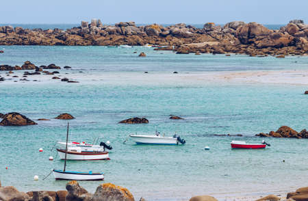 Boats in the port on the Pink Granite Coast (cote de granite rose in french). Brittany (Bretagne), France
