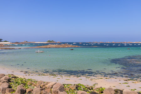 PORS SCAFF, BRITTANY, FRANCE, MAY 19: beach and channel sea near perros-guirec, cotes-d’armor