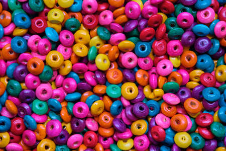 Various sewing Colorful wooden beads as background