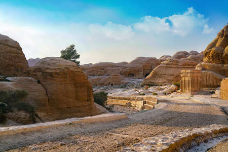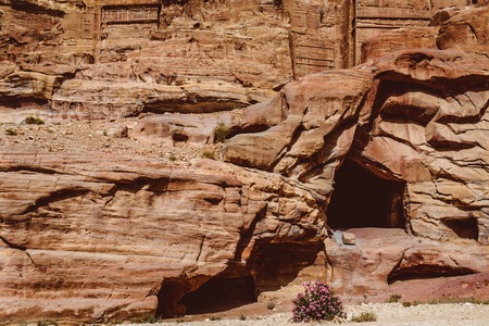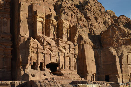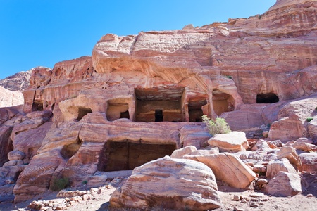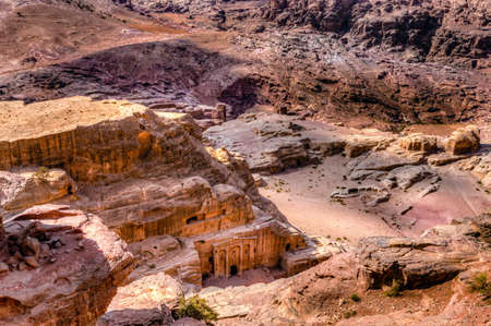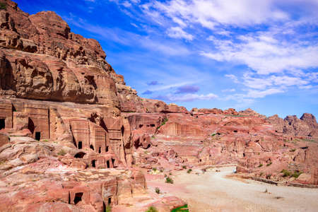 View of ancient tombs carved in the rock in Petra, Jordan