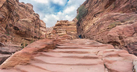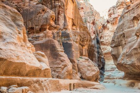 Sik Canyon wall. Petra landscape. Jordan landmark