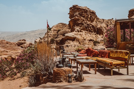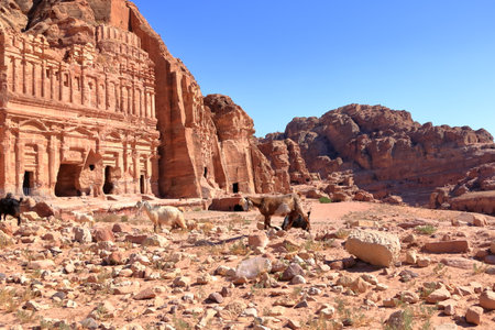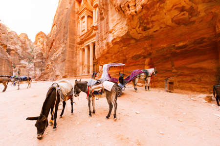 Petra, Jordan- March 16, 2017: Views of the Lost City of Petra in the Jordanian desert, one of the Seven Wonders of the World.