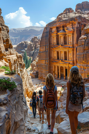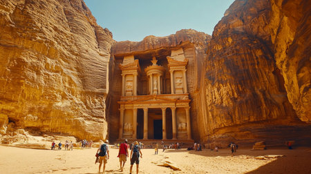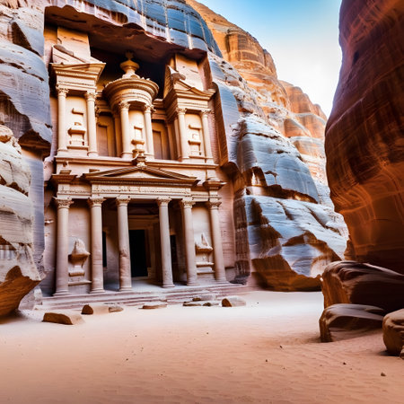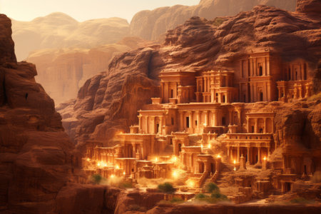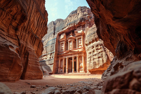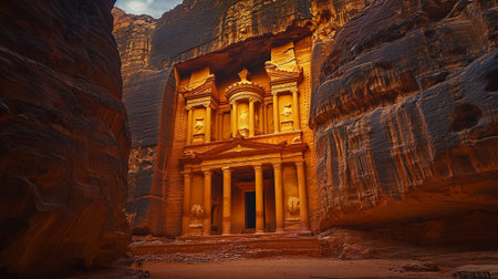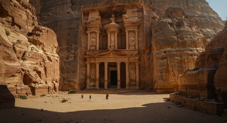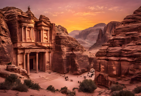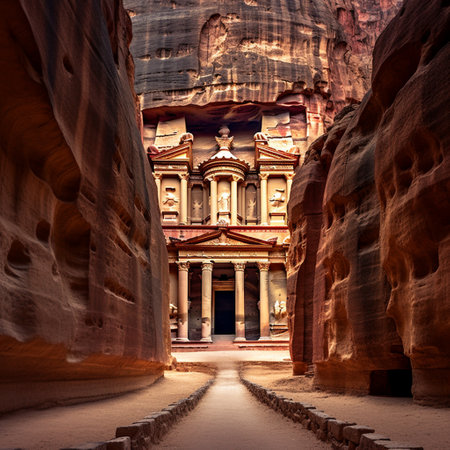 A stunning perspective of the ancient city of Petra carved into rose-colored rock in Jordan Ai generated