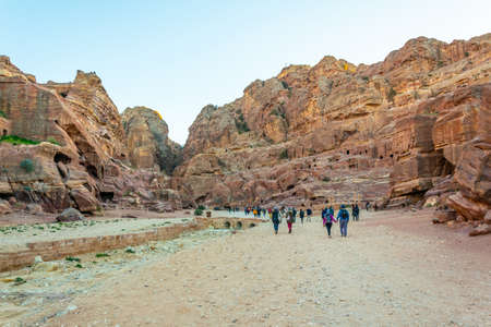 PETRA, JORDAN, JANUARY 3, 2019: People are walking towards ancient theatre in Petra, Jordan