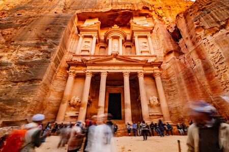 Tourists visiting the Treasury in Petra, Jordan