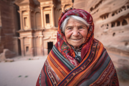 Old woman in the city of Petra, Jordan. UNESCO World Heritage Site