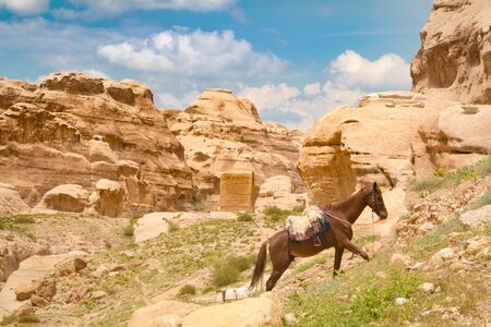 Mule at Petra Mountains in Jordania