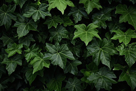Vibrant ivy leaves spread gracefully, creating a striking contrast with the dark backdrop.