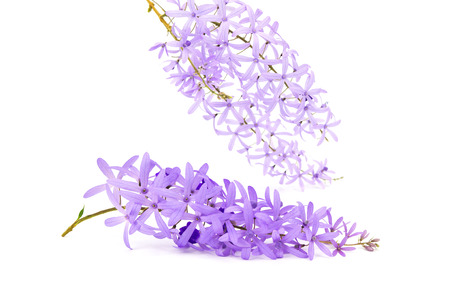 Sandpaper Vine or Purple Wreath flower on white background. (Petrea volubilis)