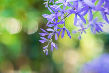 Violet flower Sandpaper Vine Purple Wreath bunch purple bouquet of five petals like a five pointed petal blooming in garden on blurred of nature background