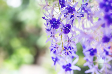 Beautiful Purple Wreath(Petrea Volubilis) or Queen's Wreath,Sandpaper Vine decorated in garden with bokeh background. Flower,garden ening or outdoor concept.