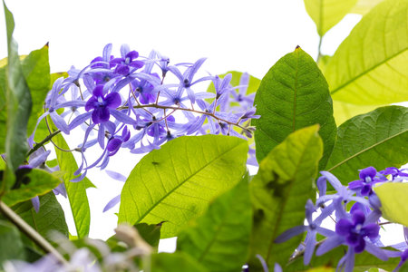 Purple flower and green leaf on white background, Petrea volubilis