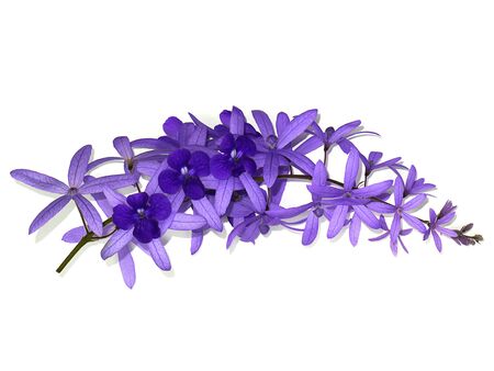 Petrea Flowers. (Queen's Wreath, Sandpaper Vine, Purple Wreath) isolated on white