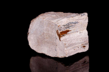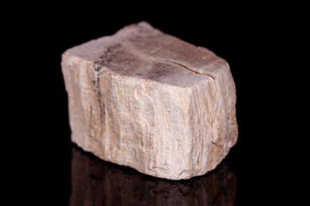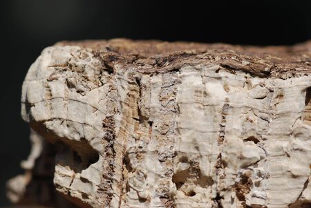 Piece of petrified wood from Patagonia - older than 65 million years - on a black background. Closeup