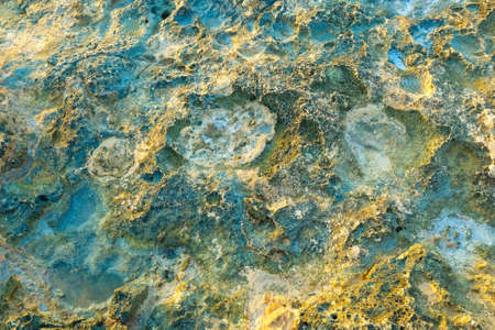 Sea cracked granite textured rock concept photo. Mediterranean sea rough surfaces. Close up stone background for design. Texture in nature for wallpaper. High quality picture for wallpaper