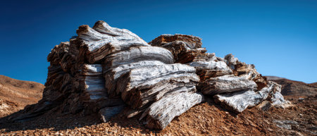 In a vast desert landscape unique chert formations rise boldly capturing the stark beauty of the scene under a clear blue sky on New Year.