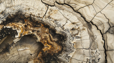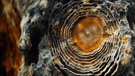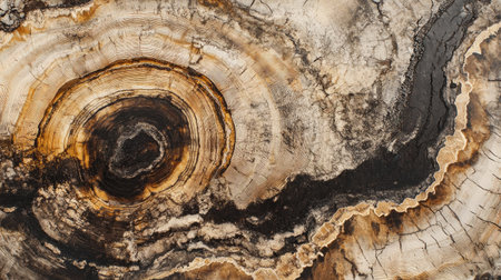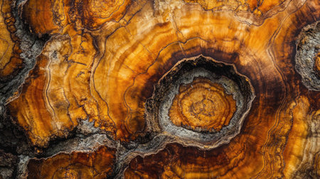 This close-up image showcases a stunning cross section of a tree, highlighting intricate natural growth rings and patterns that tell a story of age and resilience.