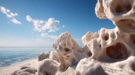Ocean coral stone background with textured porous formations, bleached white by saltwater.