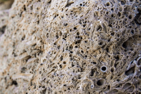 Texture formed by the corals in coastal limestone. Close up
