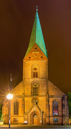Night view of St. Nikolai Church in Kiel, Germany