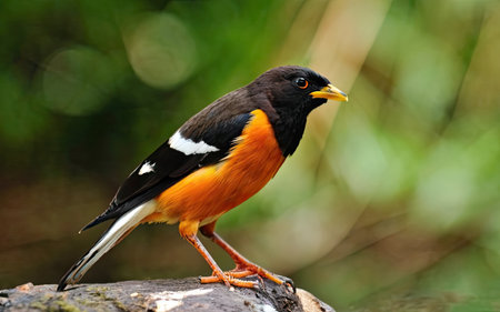 Vivid Orange Breasted Bird Perched on a Branch, Eyeing Delicious Wild Berries in Nature s Paradise