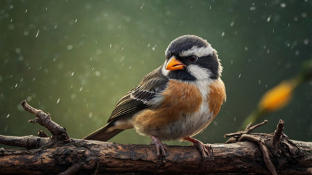 a bird perched on an ivy-covered branch, captured in a realistic still life with dramatic lighting. this stunning photograph showcases the expertise of a zbrush object portraiture specialist. the gray and amber tones add depth to the characterful animal portrait. a contest winner, this multi-layered image is a true masterpiece. ai generated