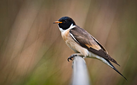 White-throated Swallow bird Hirundo albigularis perching on a fence in West Coast National Park, Western Cape, South Africa