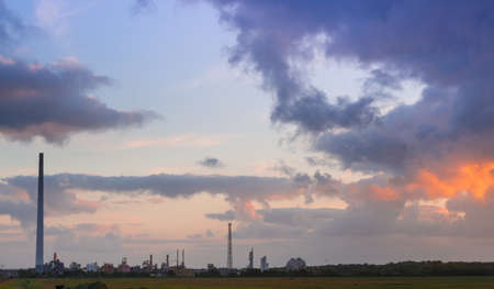 Industrial smoke from chimney in a refinery, pollution and global warming