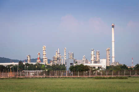 Refinery plant with blue sky and cloud in the morning, Thailand