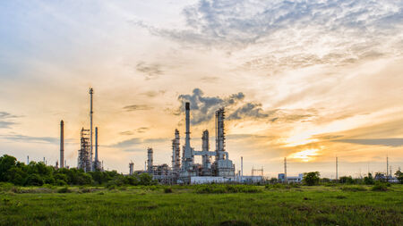 Aerial view of oil refinery at sunset, Petrochemical plant in Thailand