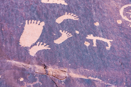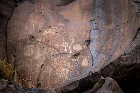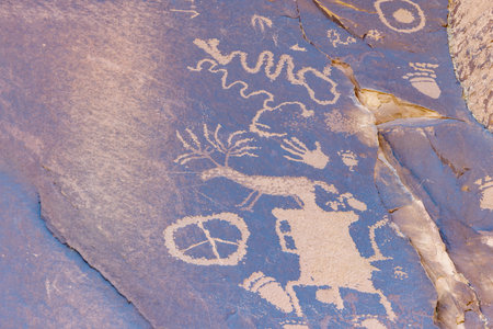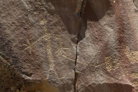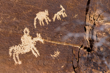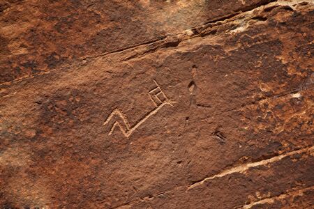 Petroglyphs carved onto rock surface by prehistoric Native American(s) at Anasazi Canyon, Utah, USA