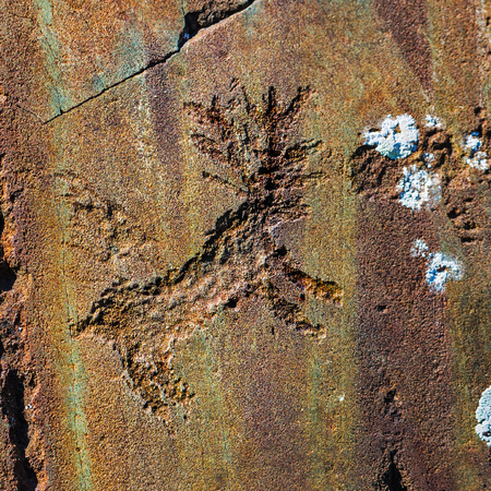 ancient rock carving of a hand symbol