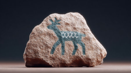 Stone Carving of an Antelope Ancient Petroglyph on Rock in Nature