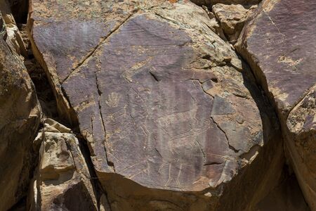 Petroglyph complex kalbak - Tash (ritual sanctuary), Ongudai district, Altai Republic, Russia - July 15, 2019: rock paintings depicting animals