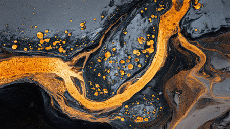 Seamless pattern texture of thick black motor oil with orange highlights