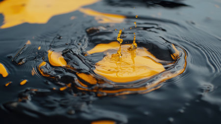 A captivating close-up photograph capturing a splash of vibrant yellow liquid against a glossy black background, showcasing dynamic textures and movement.