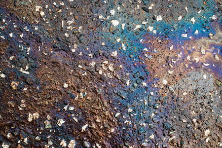 Color Gasoline fuel spots on Asphalt Road as Texture or Background. Environmental pollution concept