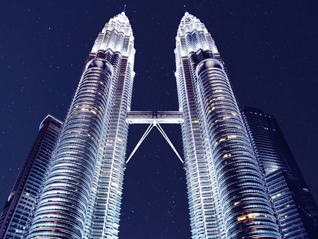 Night scene of the Twin Tower in Kuala Lumpur, Malaysia