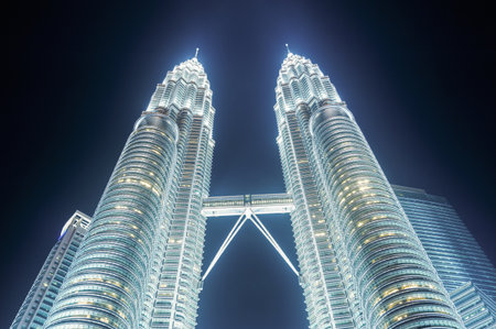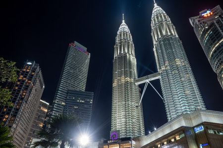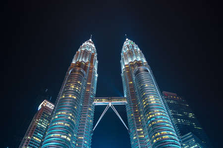 Petronas Twin Towers at night, popular landmark and touristic attraction in Kuala Lumpur