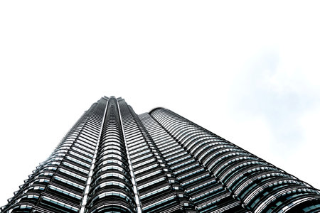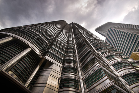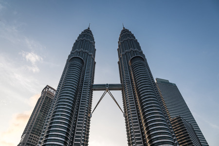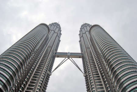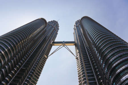 KUALA LUMPUR – Low angle of The Petronas Twin Towers on Feb 28 2012, in Kuala Lumpur, Malaysia has the world's tallest twin towers. The skyscraper height is 451.9m