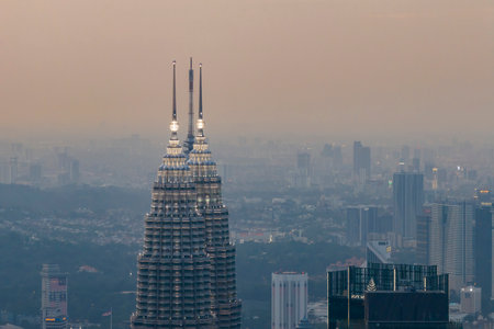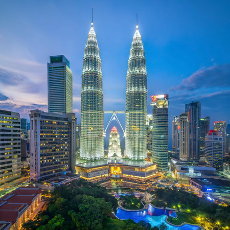 Twin tower at twilight in Kuala Lumpur, Malaysia