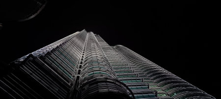 Kuala Lumpur, Malaysia - January 18 2020: Architectural details of the Petronas Twin Towers, among the tallest buildings in the world on January 18th, 2020 in Kuala Lumpur, Malaysia