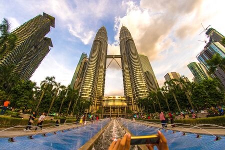 MALAYSIA, KUALA LUMPUR - 16 October 2018. The Petronas Twin Towers on sky background. Tallest buildings in the world until 2004