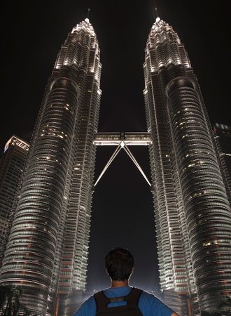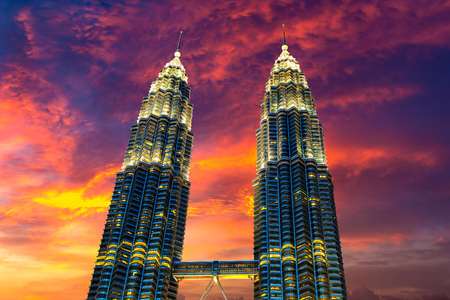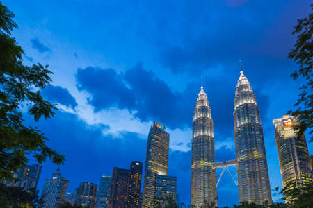 Night scene of the Twin Tower in Kuala Lumpur, Malaysia