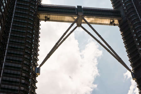 KUALA LUMPUR – Close up of the air bridge of the Petronas Twin Towers on Feb 28 2012, in Kuala Lumpur, Malaysia has the world's tallest twin towers. The skyscraper height is 451.9m