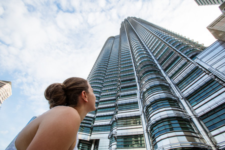 KUALA LUMPUR, MALAYSIA : JANUARY 10, 2015 : Tourist taking a picture with the background of Petronas Twin Towers.
