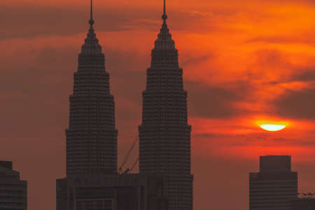 MALAYSIA, KUALA LUMPUR - 16 October 2018. The Petronas Twin Towers on sky background. Tallest buildings in the world until 2004