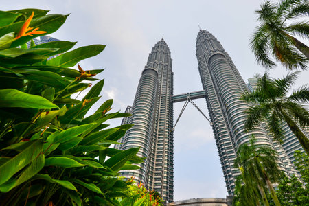KUALA LUMPUR, MALAYSIA - JULY 25: Petronas Twin Towers are famous skyscrapers located in the downtown financial district on July 25, 2018 in Kuala Lumpur